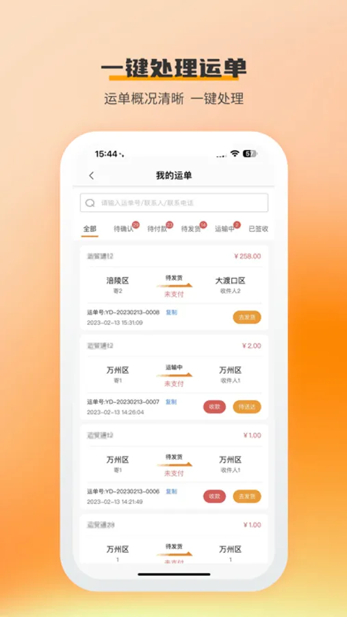 核心功能有运单处理,手工开单,客户查询等功能。