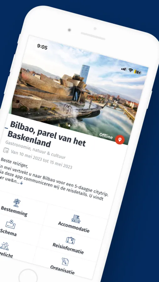 Al uw reisdocumenten altijd digitaal bij de hand.  Bekijk uw reisprogramma, de geboekte verblijven, mogelijke excursies, waardevolle reistips en open uw vouchers op ieder gewenst moment. Check uw vluchtgegevens of de route naar uw volgende verblijfplaats. Alle benodigde documenten in één app, specifiek afgestemd op úw reis bij Travelnauts.
