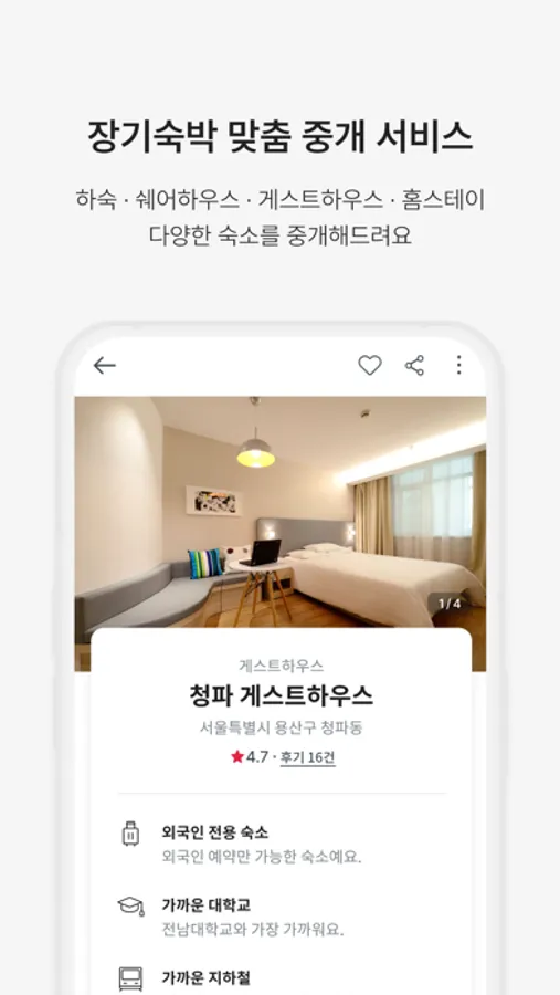 하숙 · 쉐어하우스 · 게스트하우스 · 홈스테이 다양한 숙소 중개해드려요.