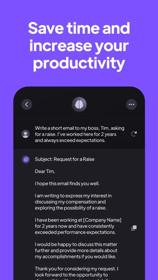 AI Mind is a new application that allows you to communicate with Chat bot. Our application stands out from others in that it stores the history of all requests, making it easy for you to find the information you need. In addition, we have configured all the intricacies of API calls so that you can enjoy uninterrupted work with AI Mind. This is an indispensable tool for those who want to get a quick and accurate answer to any question.