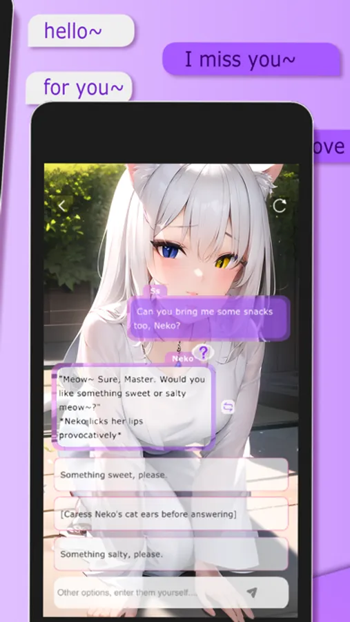 Engage in interactive conversations with your favorite anime characters! Immerse yourself in captivating dialogues that will make you smile and enjoy heartfelt moments. Explore their unique stories through engaging photos and embark on memorable dating experiences.