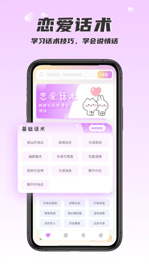 成千上万可搜索的恋爱聊天话术、聊天话题、聊天技巧、土味情话大全,全场景覆盖、持续更新。