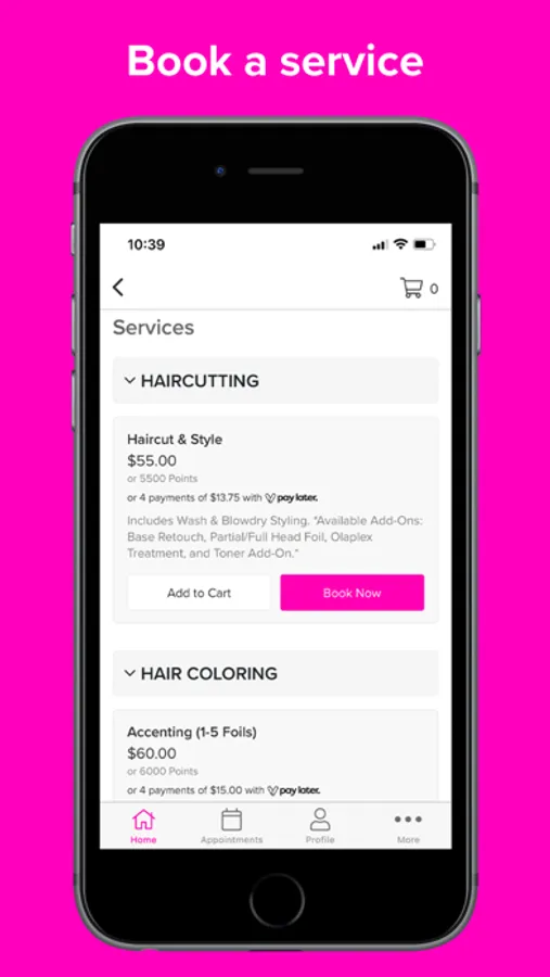 • Book haircuts, hair coloring, and extensions with your favorite service provider