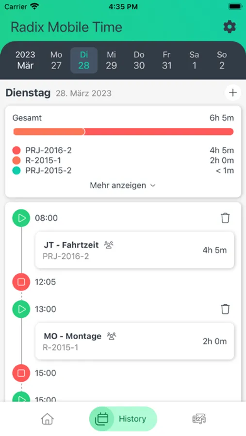 Die App für Online Zeiterfassung auf Projekte, Aufträge und Produktionen