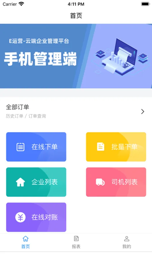 E运营客商端APP是浙江恩赫控股集团有限公司打造的一款为具有物资采供销业务的流程型企业提供便捷移动服务平台,核心功能包含车辆管理、在线下单、在线对账、余额管理、报表查询等,旨在为改变企业传统的线下服务模式,提高企业客商粘性的一款移动端操作平台
