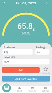 In the Chart screen, you can check the weekly, monthly, and yearly protein intake. This is useful for reviewing your daily intake.