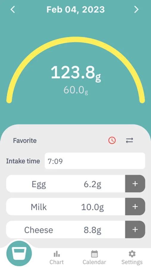 If you forget to keep a record of your protein intake, you can also add past records from the Calendar screen.