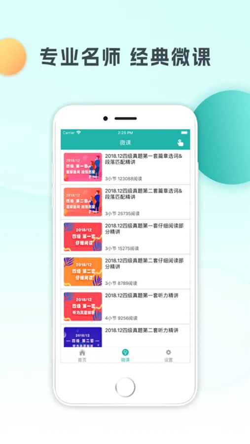 College English: It is a simple and efficient application for learning CET-4 and CET-6. It helps you to pass CET-4 and CET-6 by listening to English and doing exercises.