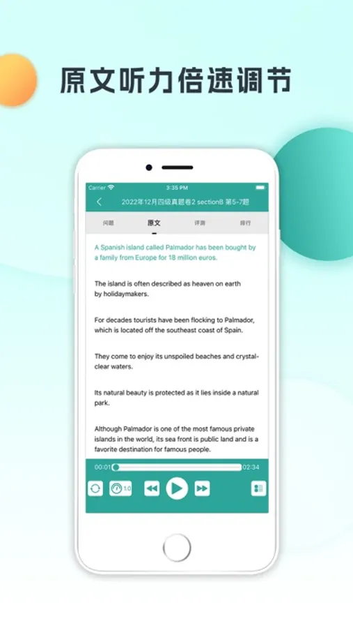2. Original text synchronous listening display, free speed regulation, to meet different levels of progress.