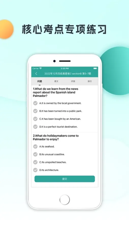1. Free switching of CET-4 and CET-6 real questions over the years to comprehensively improve English listening level.