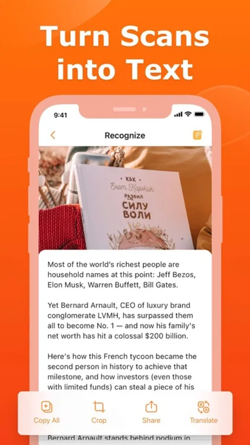 - OCR: Extract the text of your scans to copy, search, lookup, etc.