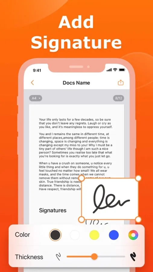 - Signature: Create and save more than one e-signature. Quickly and professionally sign important documentation.