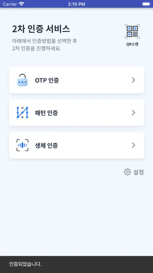 안동대학교 2차인증 앱 입니다. 생체 인증, 패턴, OTP등을 이용해 사용자 인증(로그인) 할 수 있는 통합 인증 APP 입니다.
