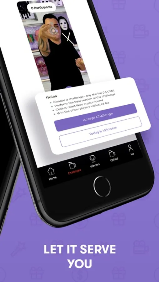 Cashei releases two new social media challenges every Saturday. You pick the challenge you like and pay a one-dollar entrance fee to enter the competition. You then upload your competition video, which must fulfill the chosen challenge's rules or criteria or get disqualified. Once your video has been uploaded, it will automatically be placed in a competition round where for 24 hours it will be competing against other competing videos in the same challenge.