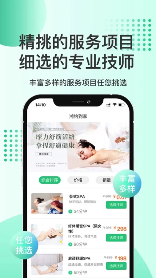 湘约到家价格透明、服务专业、健康安全,是您享受健康养生服务的不二之选。您也可以入驻加盟湘约到家,成为健康养生服务行业的一员,时间自由,无需坐班,提成高达80%。