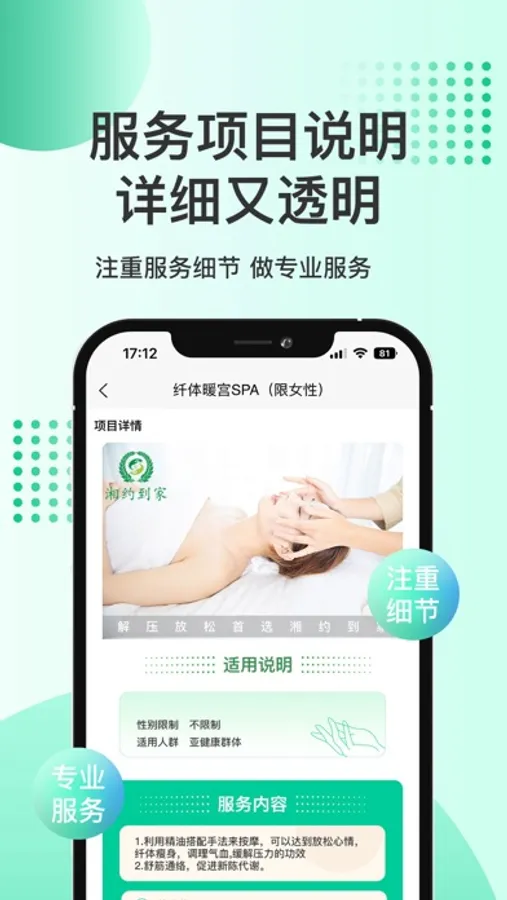 湘约到家致力于为广大客户提供更专业、更健康、更安全的健康养生服务。