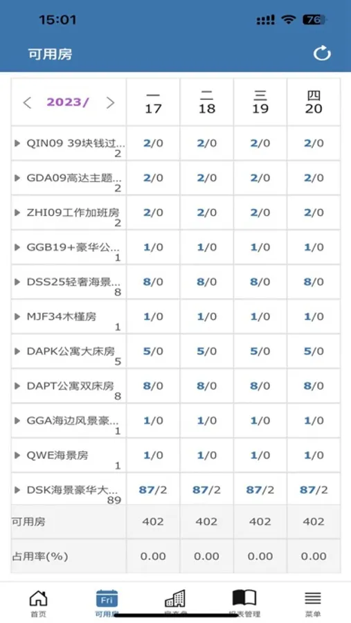 远期房态:支持查看门店房间在未来日期的状态展示