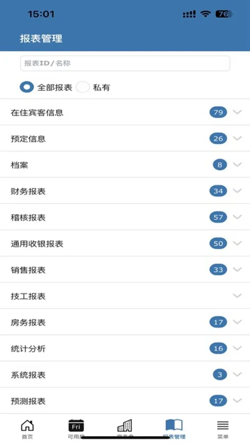 数据报表:支持营业总览和PMS全部报表展示