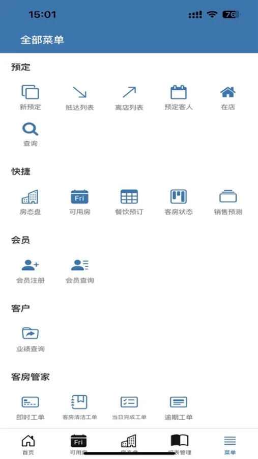 华盛手机PMS提供PC端PMS所有功能:包括报表查看、分房、订房、改价、入住。