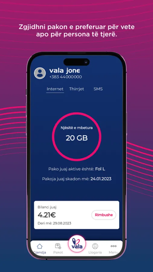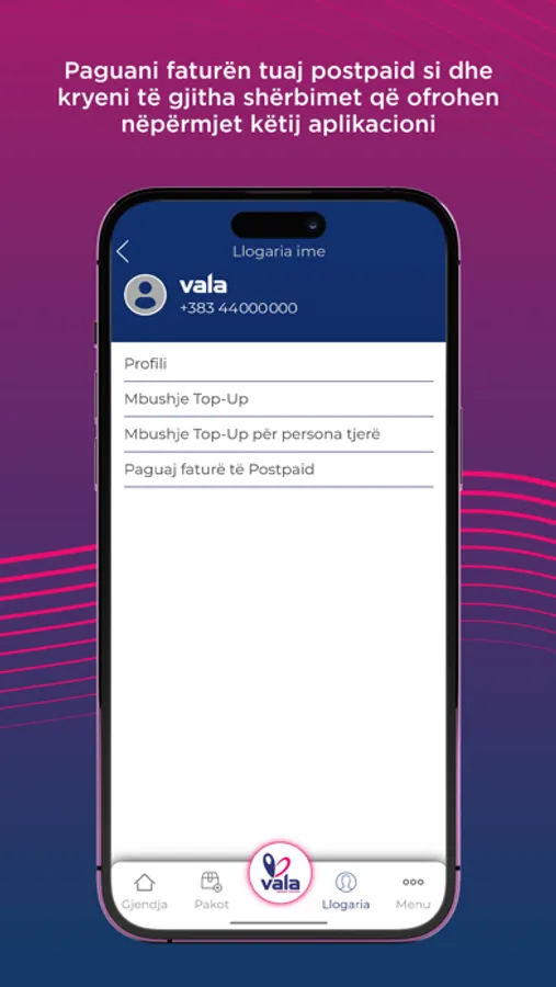 - të paguash faturën tënde Postpaid dhe t’i kryesh të gjitha shërbimet e tjera të dyqanit online të Vala-s