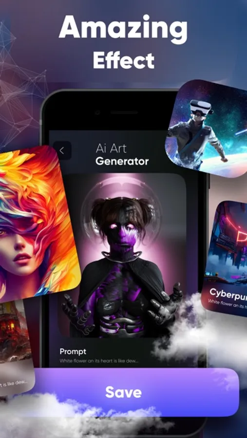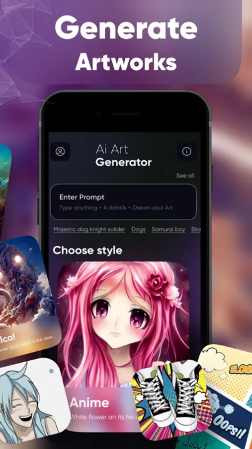 Create amazing artworks and avatar with AI powered Picture & Photo Generator app. Forget about hours of web searching for images you would need – visualize your craziest ideas and draw pictures just in seconds! The application generates unique images based on text prompts: all you need is just to describe your vision that you have on your mind and AI generator will turn words into art!