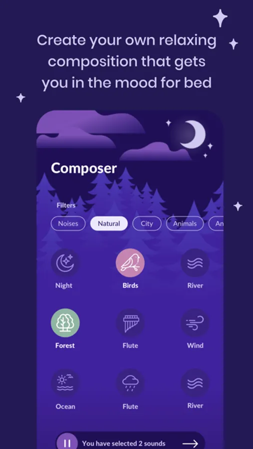 According to scientific research, listening to tranquil music and soothing sounds before going to bed reduces anxiety by up to 60%. It also improves the quality of sleep right on the first night!