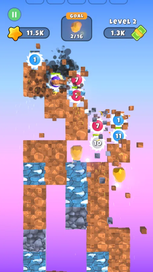 "Merge & Crush: Dig Gold" is an exciting and unique game that will keep you occupied for hours. The basic mechanic of the game, merging elements to form a more destructive force, is both enjoyable and challenging. Digging for gold by destroying all the bricks adds a fun and interesting aspect to the gameplay.