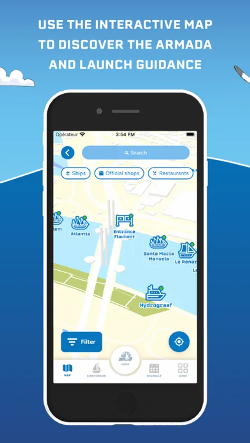 PRACTICAL INFORMATION: Thanks to the app, you’ll find all the shops, restaurants, river boat ride or stands and services available at the Armada event.