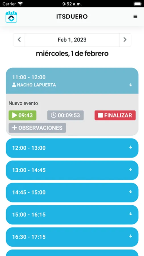 Aplicación que permite a un empleado el seguimiento de sus tareas programadas en la agenda del ERP AHORA One.