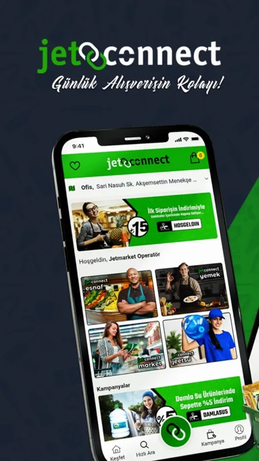 Jetconnect ile market, yemek, su ve günlük tüm ihtiyaçlarınızı alternatif ve stok sorunu olmadan kapınıza getiriyoruz. Uygulamamızda yer alan işortaklarımıza sunduğumuz teknolojik araç ve yazılımlarla sizlere doğru fiyat ve stok verileri sunuyoruz. Bu sayede sipariş iptallerinizin önüne geçerek, sizlere %100 memnuniyet sunuyoruz.