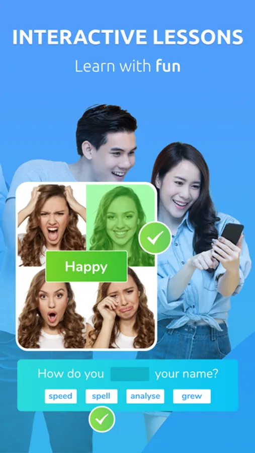 Lingutown app allows our users to read a word or phrase, pronounce it correctly, associate it with an illustration and practice it with listening, writing, and speaking games.