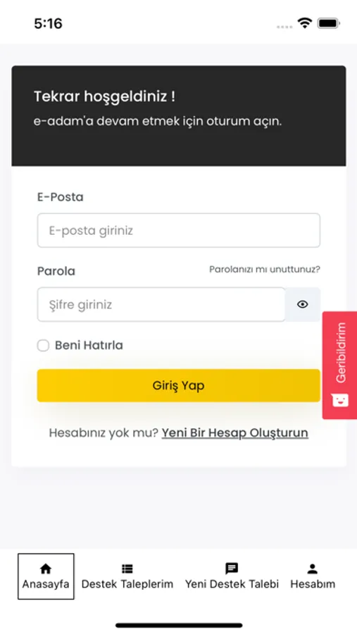 E-adam Destek paneli ile destek taleplerinizi telefonunuzdan yönetebilirsiniz.