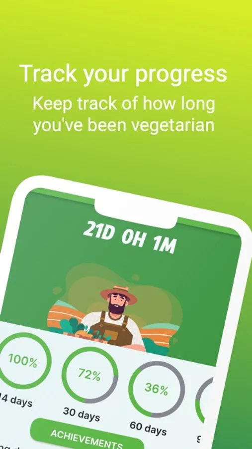 The app's main feature is its progress tracker. With it, you can keep track of how long you've been vegetarian and unlock achievements as you reach milestones. This feature is a great way to stay motivated and see the progress you've made over time.