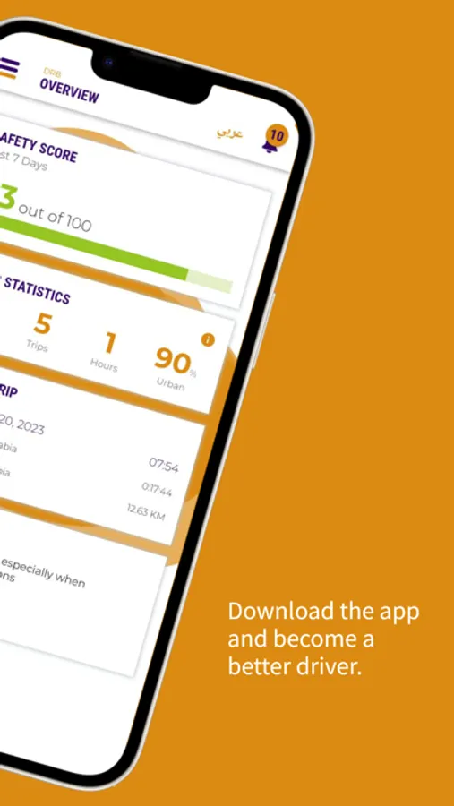 The DRB Drive application basically a tool for measuring the driver's behavior while driving based on specific defined criteria such as speeding, accelerating, braking, cornering, resting, complying, etc., which are then turned into points at the conclusion of each trip. Where the trips are displayed separately and the behavior is explained in detail for all criteria during the trip, and the events points are clearly indicated on the map, and the driver is provided with information to help him improve his behavior in the future trips, and the application allows you to collect points and use them for rewards, discounts, and vouchers.