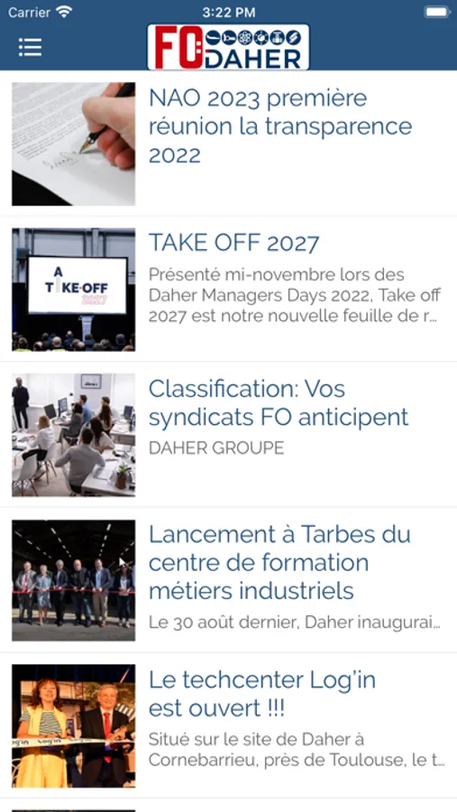 FO DAHER est l'application idéale pour les adhérents du syndicat, mais pas que, elle sera utile à tous les salariés. Elle permet un accès en temps réel à toutes les informations importantes, telles que les dernières actualités et les mises à jour de l'organisation. Avec FO DAHER, restez connecté et au fait de tout ce qui se passe dans votre syndicat, où que vous soyez.