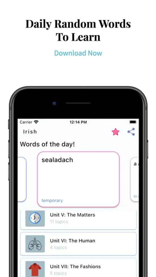 Our app lets you learn Irish language from basics to advance level. There is a large database collection of useful Irish words and phrases available offline in the app. You can can go through different topics and learn essential Irish words. Also you can learn random useful words from the app updates on daily basis.