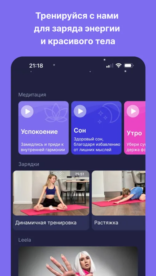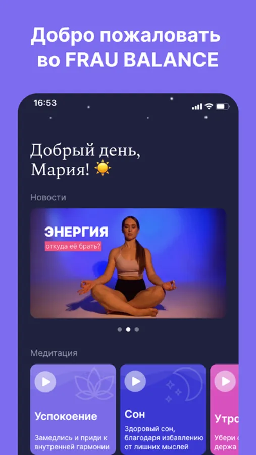 Благодаря тренировкам и медитациям, которые есть в приложении FRAU BALANCE, вы улучшите своё физическое состояние, снизите внутренний стресс и беспокойство, зарядитесь энергией, а также найдете ответ на любой свой запрос с помощью игры Лила!