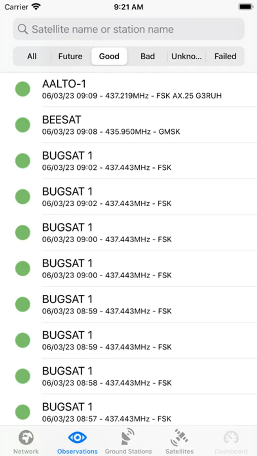 SatNOGS Network is a global management interface to facilitate multiple ground station operations remotely. An observer is able to take advantage of the full network of SatNOGS ground stations around the world. The network is open to anyone. Any observer is able to utilize all available Ground Stations and communicate with Satellites. All observations results are public and all data are distributed freely under the Creative Commons Atribution-Share Alike license. Whether you own satellite ground station equipment or you want to build one you can head to SatNOGS Project site to get up to date documentation and info on how to build a SatNOGS ground station. App functionality is currently limited by SatNOGS API and will be significantly improved in next major release.