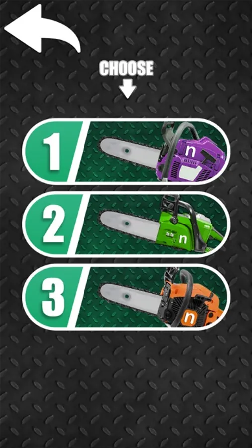 - Choose 1 out of 3 chainsaws in main menu