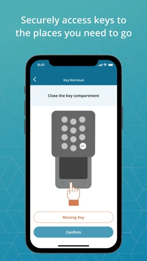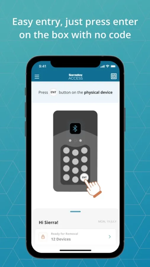 Simply open the app, press the “Ent” button on the device, and the key bin will release the key.