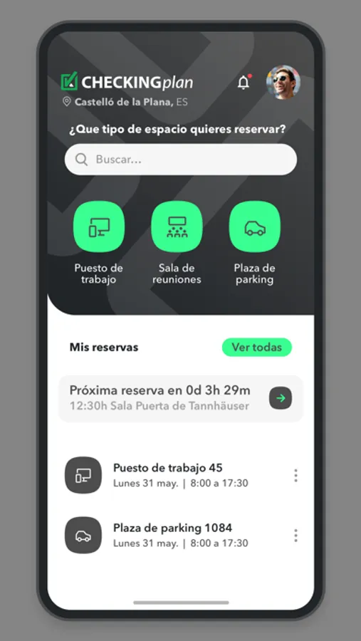 La app de CheckingPlan para la reserva de espacios y reserva de recursos permite a las empresas la optimización de recursos disponibles. Los empleados pueden reservar salas de reuniones, puestos de trabajo, plazas de parking, vehículos de empresa...