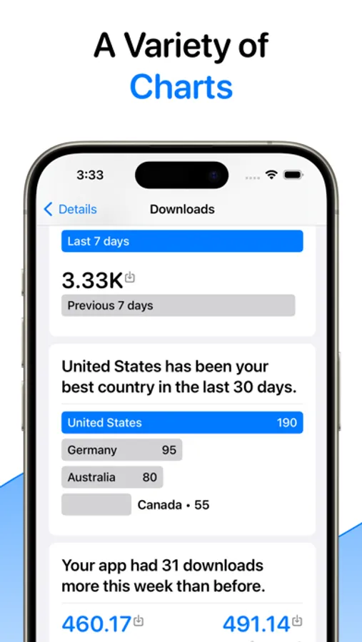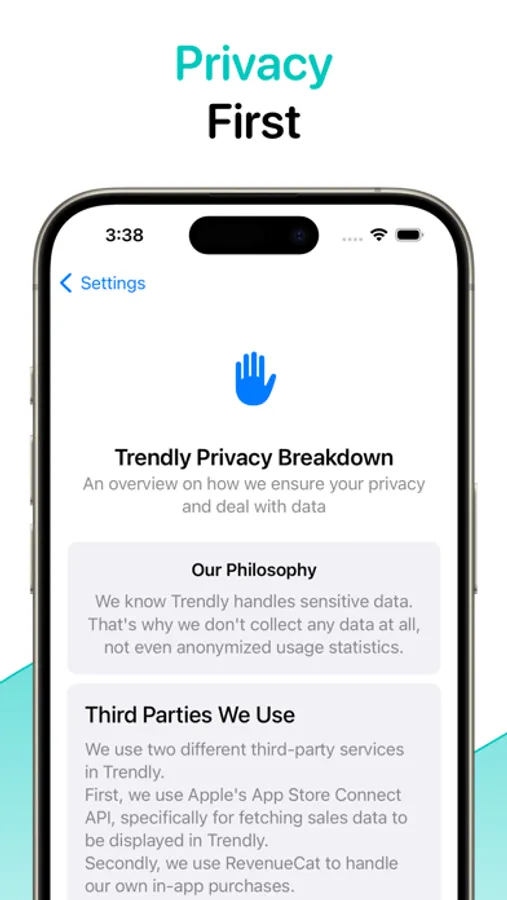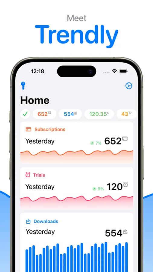 Trendly fetches your app's data privately and securely via the App Store Connect API. It is not affiliated with Apple.