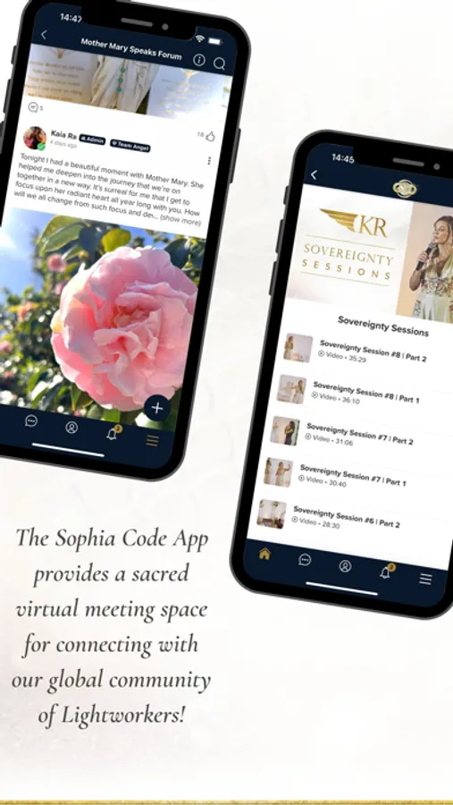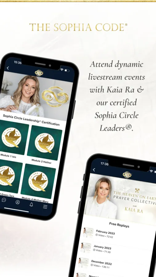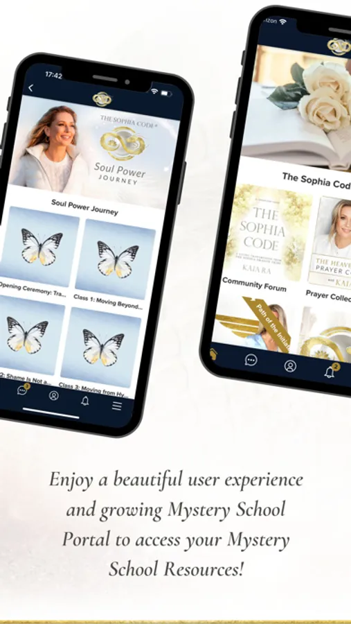 Are you ready to go deeper in your spiritual journey? The Sophia Code App provides a sacred virtual meeting space for connecting with our global community of Lightworkers, to easily access your spiritual tools and curriculums in The Sophia Code® Mystery School portal, and to attend dynamic livestream events with Kaia Ra and our certified Sophia Circle Leaders®.