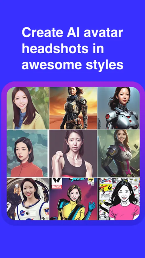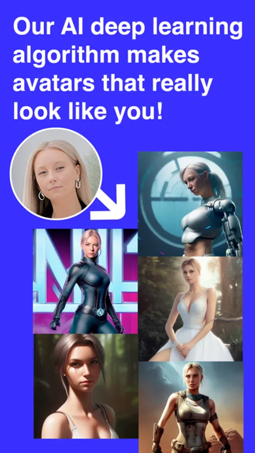 Create AI avatar profile pictures for your social media. Super fun and awesome photos created by artificial intelligence. Become a warrior, robot, astronaut, helicopter pilot, and more. AI learn your face from images you provide and applies them to dynamically created images.