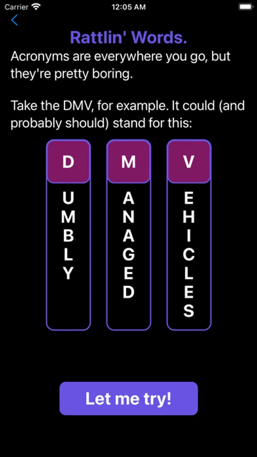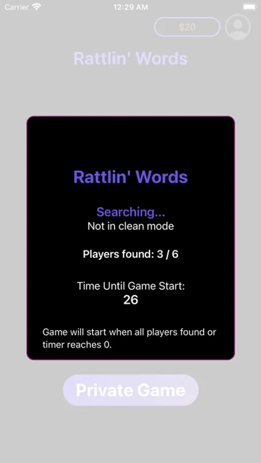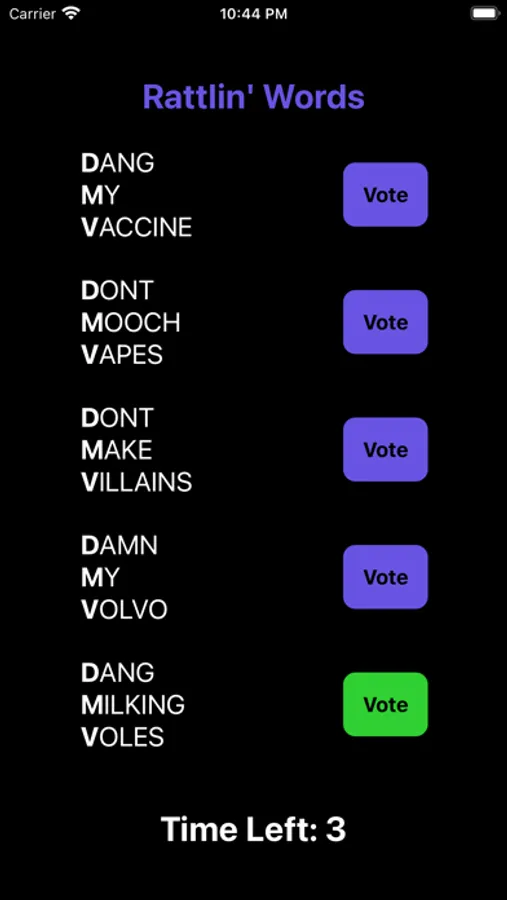 Rattlin' Words is the latest multiplayer word game. A fast paced, real-time game where players vote on the best acronym creation.