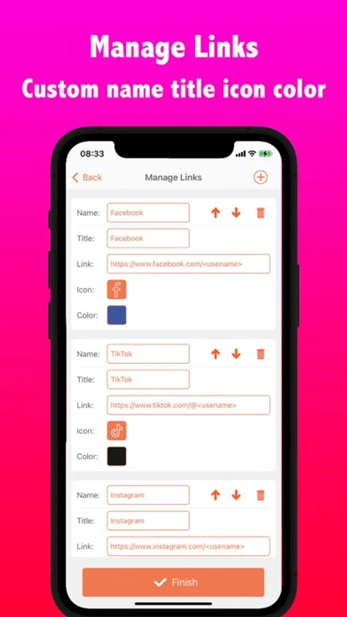 Autogenerate social links by one touch, Connect all your links in one profile.