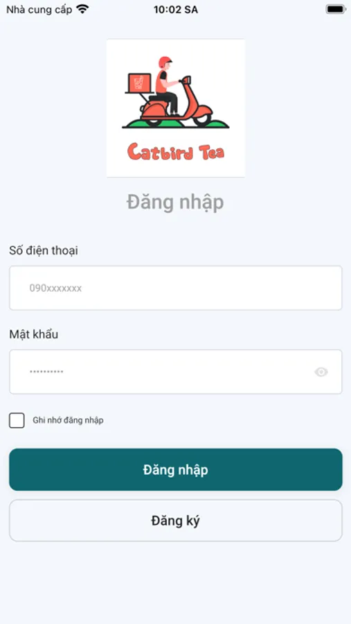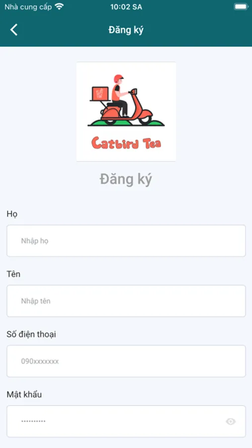 Ứng dụng cho phép người dùng đăng ký làm shipper của Trà sữa Catbird Tea.