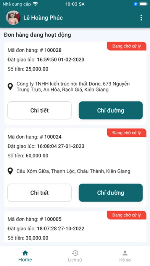 + Xem dược danh sách lịch sử đơn hàng đã giao.