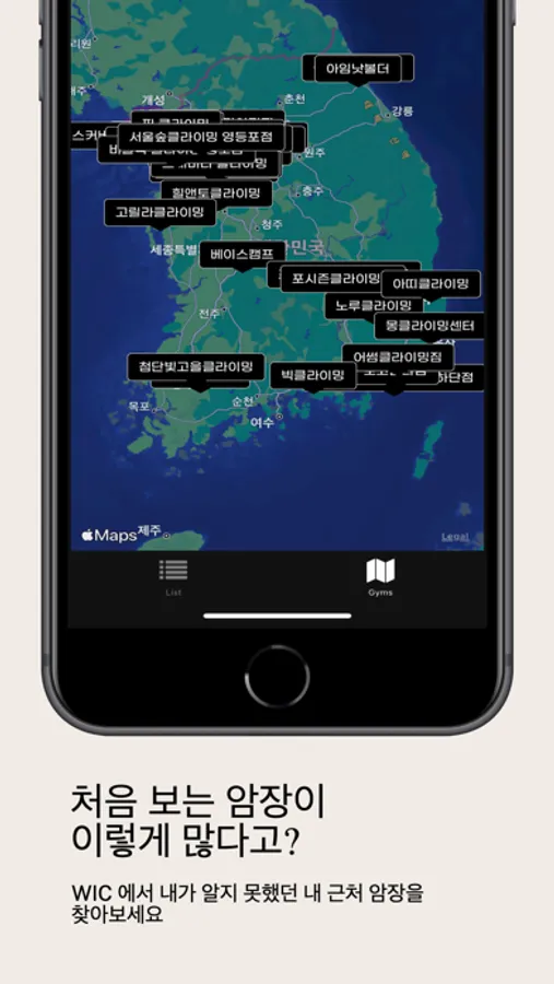 새롭게 생긴 암장이 너무 많아요! 내가 모르는 암장들이 너무 많아졌어요! 새로운 암장을 가보고 싶을 때는 Where is the climbing gym! (WIC) 에서 검색해보세요 :)
