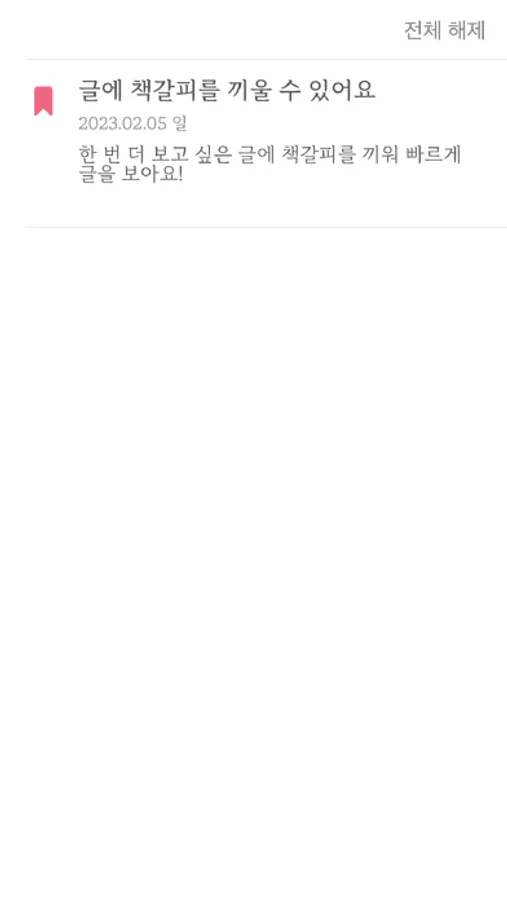 한 번 더 읽고 싶은 글에 책갈피를 끼워 빠르게 찾을 수 있어요!